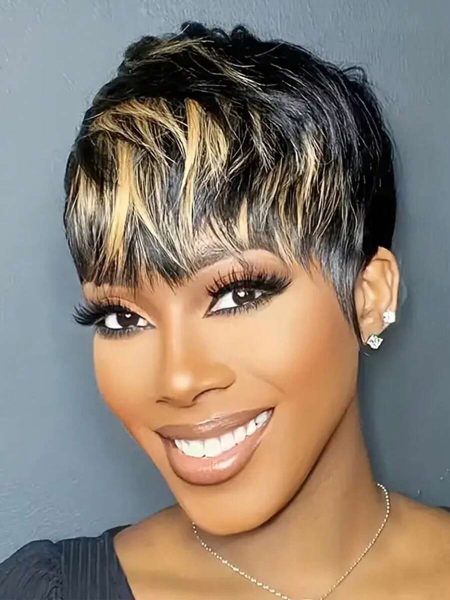 Pixie Cut Wigs For Women Short Pixie Cut Human Hair Wigs Short Layered Wigs Full Machine Made Wig Glueless Wig Straight Virgin Human Hair In Black