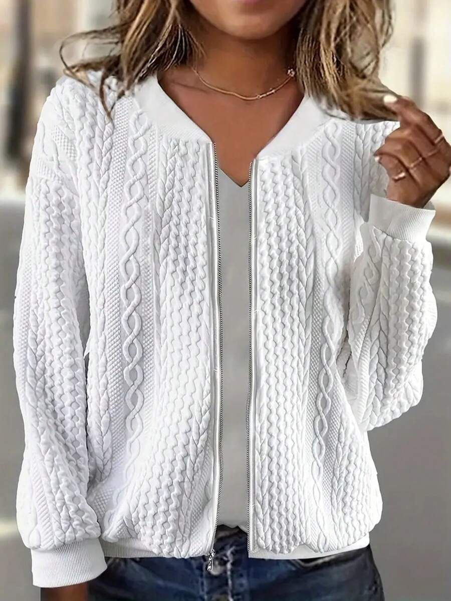 Plain Texture Zipper Bomber Jacket, Daily Casual Solid Color Long Sleeve Coat, Women's