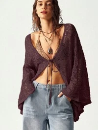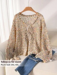 Sunnyshic CURVESunnyshic Plus Size Women Elastic Fitted Tie Bow Knit Cardigan, Suitable For Daily Commute, Indoor And Outdoor Wear, Best Christmas Gift, Spring, Summer, Fall, Winter, Spring/Fall, Fall/Winter,Plus Size Beige Knitwear Cardigan V Neck Wrap Design Long Drop Shoulder Sleeves Short Length Casual Style,Chic Plus Size Beige V Neck Wrap Cardigan Short Knitwear With Drop Shoulder Long Sleeves