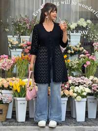 SolflareCárdigan de mujer cómodo, casual y elegante con lazo delantero, cuello en V y manga corta, adecuado para vacaciones, playa, escuela, uso diario, citas, viajes, aeropuerto, primavera y verano