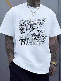 Camiseta de 100% algodón de 220g para hombre talla grande con texto de arte callejero audaz y gráficos abstractos que simbolizan fuerza y libertad
