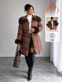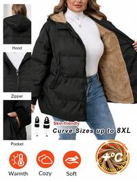SHEIN Clasi Curvy Plus Size Women's Black Quilted Zipper Long Hooded Padded Jacket With Pockets, Warm Fur Collar,Removable Fur Collar,Warm And Comfortable,High-Quality Detachable Warm Fur Collar,2025 New,Comfortable And Warm From The Cold,Plus Size Women Long Sleeve Pockets Casual Coat,Fall Women Clothes, Winter Clothes For Women,Vintage,Going Out Outfits,Fall Outfits,Winter For Women,Fall Clothes Plus Size, Office Outfits For Women,Fall Outfits For Women,Classy Outfits For Women,Women's Fall Clothes,Office,Halloween,Halloween Costumes,Halloween Clothes,Halloween Clothes Women,Fall Tops,Old Money Style Women,Plus Size Women Long Sleeve Pockets Casual Hooded Coat,Quilted Coat,Zip Up,Women's Winter Clothes ,Christmas Women's Clothing,Suitable For Multiple Occasions Autumn #6 Bestseller