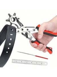 1pc Multi-Function Leather Hole Punch Tool, Leather Punch Tool, Universal Hand Belt Drill Tool, Rotary Leather Hand Punch, Suitable For Belts, Watch Bands, Dog Collars, Saddles, Shoes, Fabrics, DIY Home Or Craft Projects (Silver/Red), Christmas Gift, Leathercraft, Hole Punch (Color And Style Random) #1 Bestseller