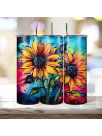 1 pieza Taza de agua aislada de acero inoxidable de 20 onzas con impresión de girasol, taza con inclinación, con pajita de acero inoxidable, tapa de la taza, cepillo para la pajita, regalo para familiares y amigos, adecuado para oficina, fitness, deportes al aire libre, regalo del Día de San Valentín, regalo de vacaciones