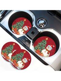 2pcs Christmas Tree Snowman Pattern Car Cup Holder, Absorbent Rubber Cup Mat, Non-Slip Car Interior Accessory, Universal Rubber Cup Pad For Water Bottles, Print Position May Vary, Nonslip Mat, Drink Holder, Festive Design, Holiday Decor, Nonslip Base, Absorbent Material, Auto Accessory, Holiday Shoppers, Road Trip Gear#9 Bestseller