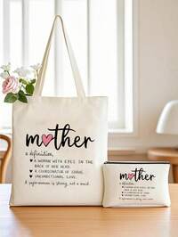 Bolso de lona con estampado de letras, bolso de mano para el Día de la Madre, bolso de mano reutilizable con estampado para damas, bolso de compras con doble asa, bolso de hombro de gran capacidad, bolso de mano casual, adecuado para el trabajo, la escuela, las compras, actividades al aire libre, un gran regalo para amigos y novias, una opción perfecta para el Día de la Madre, vacaciones y días festivos #1 Más vendidos