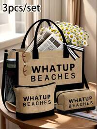 1 Set Bolso de playa para mujer, bolso de lona para accesorios de playa, adecuado para boda, cumpleaños, vacaciones, es un gran regalo para mujeres, mamá, maestras, amigas, damas de honor, estudiantes, de vuelta a la escuela, bolso grande, bolso de viaje para vacaciones, escapada de fin de semana, con pañuelo, regalo de cumpleaños personalizado para amiga #8 Más vendidos