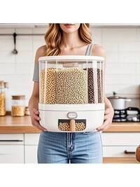 Large-Capacity Rice Bucket, Grain Storage Container, 360° Rotating Grain Dispenser, 6-Compartment Design, Moisture-Proof And Pest-Resistant Storage Jar, Suitable For Rice, Grains, Beans, Pet Food, Home Kitchen Cabinet Rice Storage Container, 22 Lbs/13 Lbs Capacity