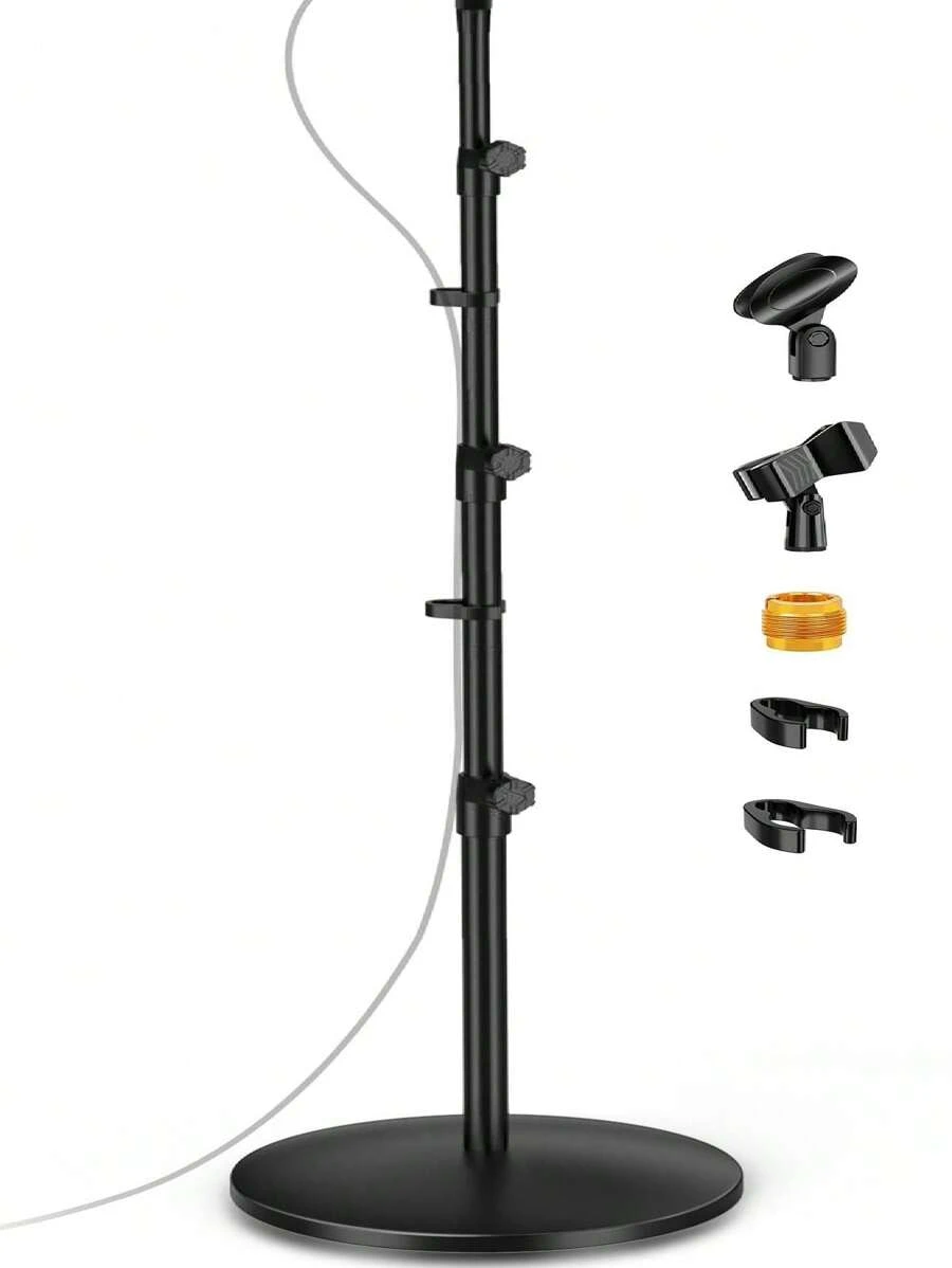 Round Base Microphone Stand, Bietrun Heavy Duty Adjustable Metal Mic Floor Stand For Singing/Stage With 2 Universal Mic Clip, 3/8'' To 5/8''Adapter, For Shu Re SM7B/SM58/Sam Son Q2U/Podmic&More