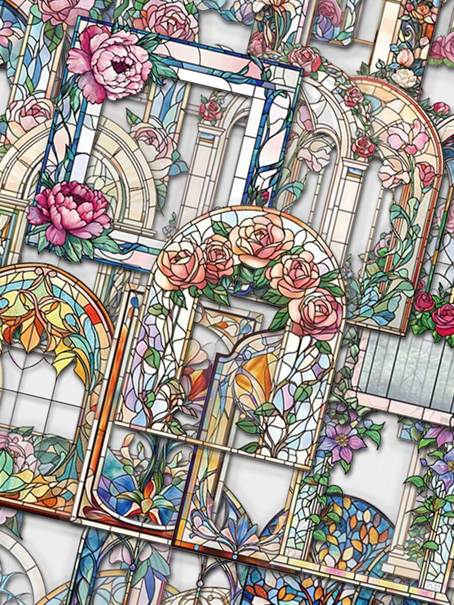 SCXXBSW 50pcs Retro Flower Mirror Stickers Cartoon Graffiti Stickers Decorative Handbooks Water Cups Notebook Luggage Waterproof Stickers