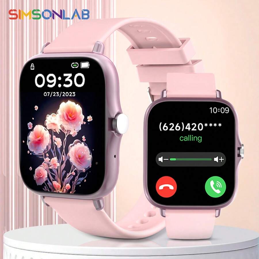 SIMSONLAB 1.83 Inch Silicone Strap With Steel Smart Watch Band , HD Color Screen Fashion Sporty Smart Watches, Fashionable Thin Design, Wireless Call & Timer , Professional Sports Mode, Smart Watch For Man , Universal For Men And Women, Suitable For Android And IPhone