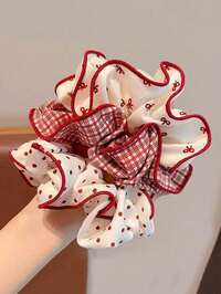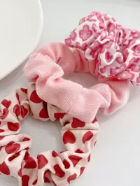 6pcs Valentine's Day Women's Sweet & Elegant Pink, Red Fabric Love, Lips, Rainbow, Heart Printed Large Hair Scrunchies, Suitable For Holiday Parties, Daily Outings, Hair Decoration Accessories, Bohemian Party, Elegant ,Hair Ties ,Scrunchy Hair Ties#6 Bestseller