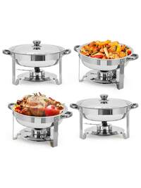 Dinner Plates, 6-Piece Hotel Set, Silver Stainless Steel Steamer Trays, 1/3 Size 4-Inch Deep, Commercial Multi-Piece Meal Trays, Steam Buffet Trays, Food Service Plates, For Catered Events, Grocery Stores, Ice Cream Shops, Cafeterias, Hotels, And Wedding Use.