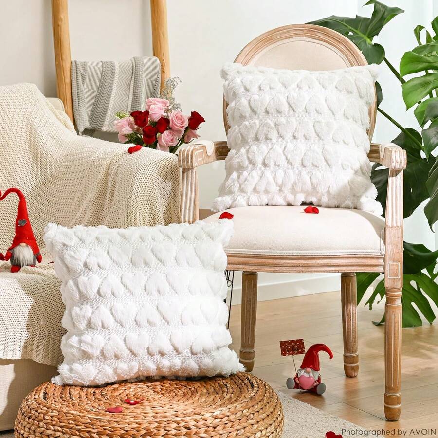 Set Of 2 Plush Throw Pillow Covers With Heart-Shaped Patterns, 18 X 18 Inch Soft And Fluffy Cushion Cover, Comfortable Decorative Pillow Cover, Suitable For Living Room, Bedroom, And Home Decoration
