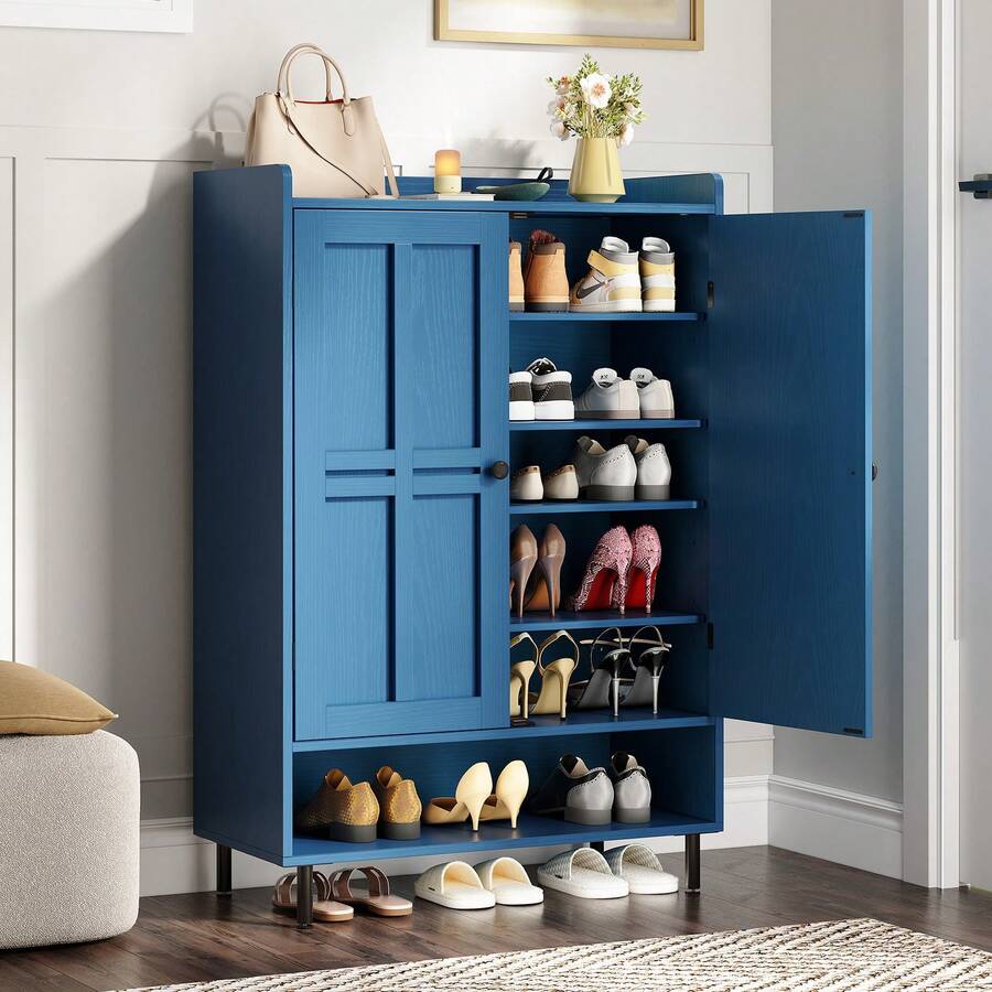 Shoe Cabinet, 6-Tier Shoe Storage Cabinet With Adjustable Shelves , 45'' Tall Shoes Rack Organizer Cabinet For Entryway, Front Door