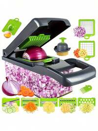 16pcs Vegetable Chopper, Multi-Function Fruit Slicer, Manual Food Grinder, Outdoor Camping Vegetable Slicer With Container, Onion Chopper, Potato Shredder, Kitchen Gadgets, Manual Food Shredder With Container, Interchangeable Blade Onion Chopper, Potato Grinder, Kitchen Tools, Dorm Essentials