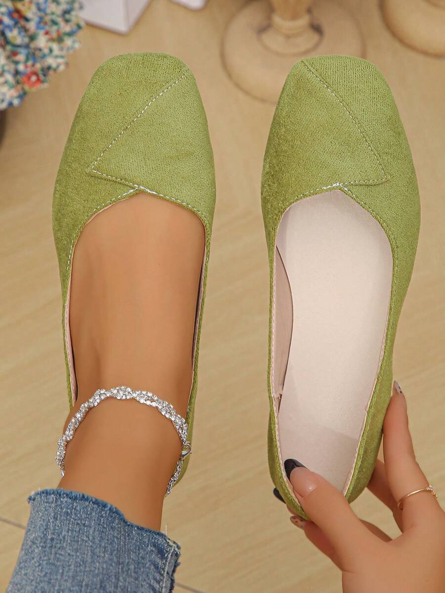 Spring/Autumn New Casual Slip-On Square Toe Flat Shoes, Versatile Outdoor Loafers, Large Sizes 36-43, Fashionable & Comfortable Suede Flat Shoes, Dusty Green