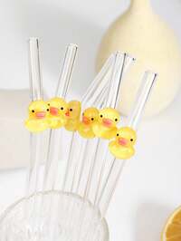 1Pc/2Pcs/5Pcs/1Set/2Set Cute Cartoon Rabbit/ Bear Glass Drinking Straw,For Water Cup,Transparent Reusable Bent Glass Straws, For Smoothies,Milk Tea,Juice,Cocktails,Cold Drinks,Party Supplies,Colorful Cute Cartoon Design Shaped Bent Glass Straw Reusable School/Summer Supplies,For Graduation Season,Father's Day Gift. #5 Bestseller