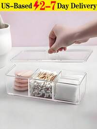 [Delivery Within 2-7 Days In The United States]Transparent 3-Compartment Cotton Ball And Swab Organizer With Lid, Dust-Proof Design. Waterproof Bathroom Storage Container, Makeup Organizer, Bathroom Container, Transparent Acrylic Desk Organizer, Makeup Box, Cosmetic Storage For Bedroom Vanity Or Bathroom Countertop. Bathroom Jar, Cotton Pad Storage, Bathroom Vanity, Workbench Storage. Fully Transparent Three-Compartment Design, Dustproof And Waterproof. Organizes Cotton Pads, Cotton Swabs, Hair Ties, And Other Beauty Essentials. Also Ideal For Office Desk Organization To Save Counter Space. Made From High-Quality Plastic Material, Odor-Free, Sturdy, And Durable.Local