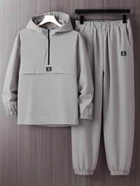 SHEIN 2pcs/Set Teen Boy Half-Zip Hoodie Jacket And Jogger Pants, Casual Sports Style Suitable For Commuting, School, Daily Leisure, Travel, Sports, Fleece Thickened, Suitable For Spring, Summer, Autumn, Winter Fall #3 Bestseller