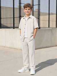 SHEIN Teen Boys Casual V-Neck Short Sleeve Shirt And Shorts Set, Comfortable, Fashionable, Versatile, Soft Fabric, Suitable For Daily Wear, School, Outings, Music Festivals, Holidays, Parties, Summer Beach Vacations, Summer Vibes, Festivals Boys Blue Short Set Boy Linen Outfit Boys Sky Blue And White Sets Boys Summer Outfit Preppy #6 Bestseller