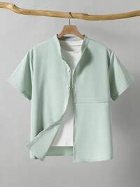 SHEIN Teen Boys' Beige Patchwork Khaki Contrast Collar Summer Beach Shirt, Casual, Collegiate, Comfortable, Fashionable, Versatile, Soft Fabric, Suitable For Daily Wear, School, Outings, Music Festivals, Holidays, Beach Vacations, Summer Vibes, Festivals, Spring/Summer Aesthetic Shirts Half Shirt Summer Shirt