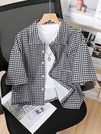 MirajukuStriped Crochet Teen Boys' Casual Shirt, Comfortable, Fashionable & Versatile For Beach Vacation, School, Daily Wear, And Spring/Summer Casual Classic Striped Collar Short Sleeve Shirt, Versatile For Commuting, School, Everyday Wear, Sports, Suitable For Spring/Summer #2 Bestseller