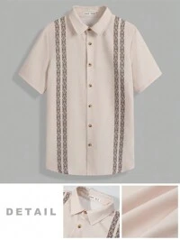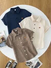 WimblieSHEIN 3pcs/Set Teens Boys Loose Casual Versatile Stand Collar Patch Woven Short Sleeve Shirt, Suitable For School, Gathering, Party, Travel, Casual, College Style, Comfortable, Fashionable, Practical, Soft Fabric, Suitable For Daily Wear, School, Travel, Outdoor Sports, Music Festivals, Holidays, Beach Vacation, Summer Atmosphere, Festivals, Spring/Summer Boys Plain Shirts Boys Linen Shirt Boys Knit Shirt Boy Collared Shirt Teen Plain Shirts #8 Bestseller