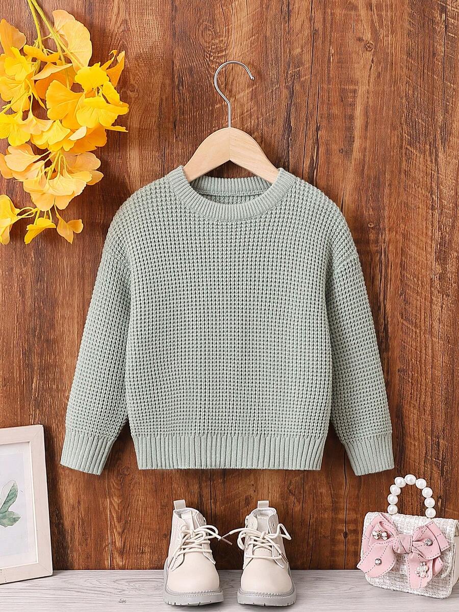 SHEIN Kids FANZEY Suéter De Manga Larga Con Cuello Redondo Para Niñas Pequeñas