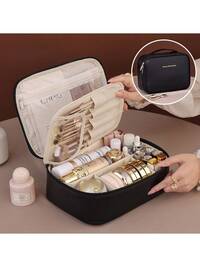 Bolsa de maquillaje multifuncional de piel sintética beige, impermeable, de doble capa, de gran capacidad, portátil, para viajes, cosméticos, artículos de tocador, con asa, divisores para mujer, bolsa de maquillaje de PU, bolsa para guardar brochas, neceser de negocios para hombre, bolsas de maquillaje, organizador de maquillaje, organizador de maquillaje, almacenamiento de maquillaje, suministros para la vuelta al cole, bolsa de maquillaje#1 Más vendidos