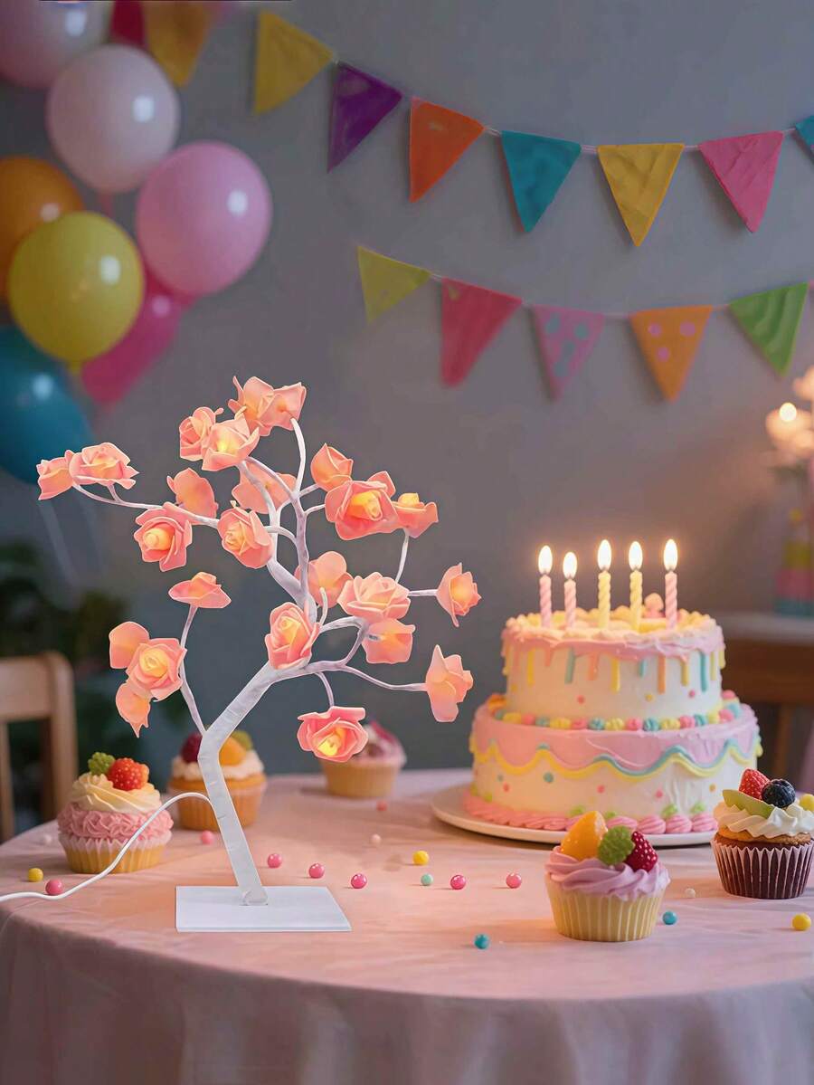 • USB Powered Rose Tree Lamp - Comes With Data Cable/USB Rechargeable LED White Rose Tree Lamp - Flower Night Light, Adjustable Potted Design, Suitable For Home Living Room, Halloween, Bedroom And Party Decoration, Christmas Desktop Decor, Perfect Holiday Gift!
