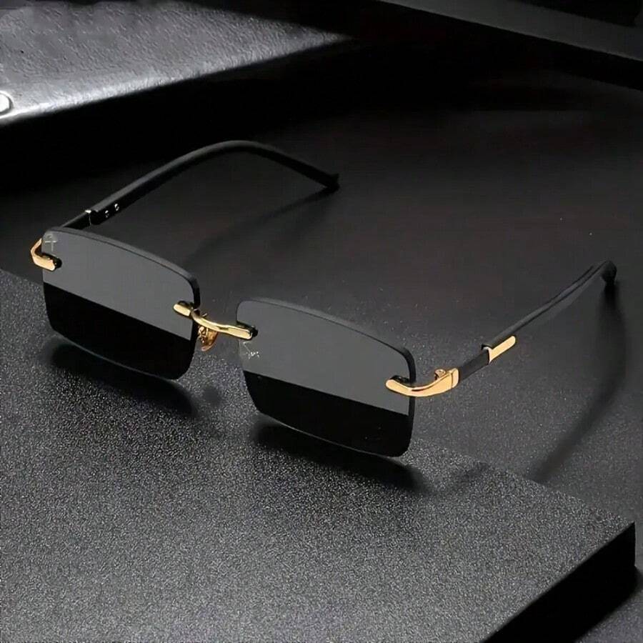 Vintage Square Frameless Glasses - Black With Gold Accents, Lightweight And Comfortable Unisex Style, Versatile For Casual And Formal Outfits