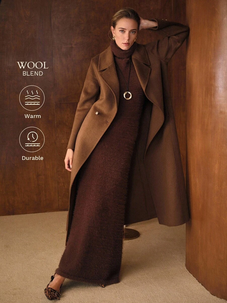 MOTF PREMIUM WOOL DOUBLE BREASTED BELTED OVERCOAT FOR AUTUMN & WINTER