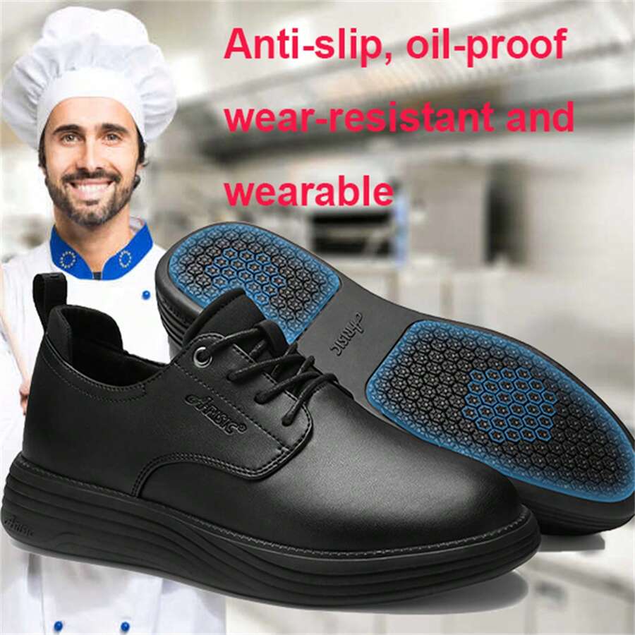 Water-Resistant Men's Solid Color Professional Chef Shoes, Comfy Non Slip Kitchen Shoes Lace Up With Durable Rubber Soles Casual Kitchen Footwear