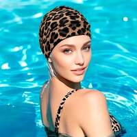 1 pieza Gorro de natación con estampado de leopardo, gorro de natación de tela plisada con estampado de leopardo, material altamente elástico, ajuste no apretado para cabello largo y cabeza grande, cobertura cómoda para las orejas, elegante, deportivo y cómodo, adecuado para días de piscina o playa, diseño de gorro de natación oversize, se adapta a cabello largo y corto, unisex, ideal para natación, spa, deportes acuáticos #7 Más vendidos