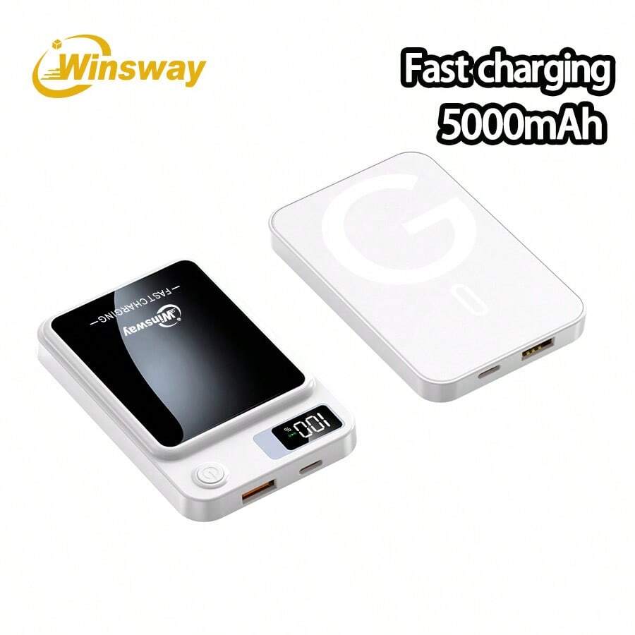 Winsway 5000mAh Magnetic Wireless Power Bank, Convenient Wireless Magnetic Charging, Dual Devices Parallel Power Supply, Ultra-Thin Body For Easy Boarding, LED Digital Display Shows Power Level