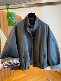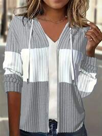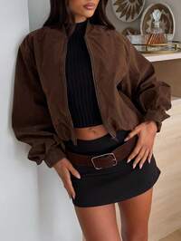 MUSERA Chaqueta ajustada con cuello de embudo, detalle de costilla, cintura ceñida, para salir, uso diario, salida nocturna, casual, cool, ropa de calle, lavada, , vacaciones #5 Más vendidos