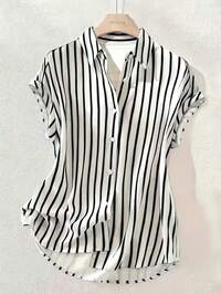 World Fashion Show1pc Women's Shirt, All-Over Printed Design, Collared, Long Sleeve, Single-Breasted, Casual Blouse, Elegant Outerwear - Breathable & Comfortable, Suitable For Beach, Work, Daily Wear, Party, Wedding, And An Ideal Gift For Girlfriend, Wife, Mother, Mother's Day Spring