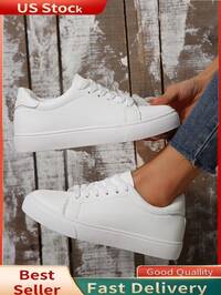 Women's White Casual Sneakers, Low-Top, Lightweight, Non-Slip, Wear-Resistant, Low Heel, Round Toe, Breathable, Lace-Up, Suitable For Outdoor Sports, Spring/Autumn#5 Bestseller