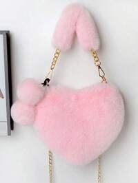 Women's Heart-Shaped Fluffy Handbag, A Must-Have Gift For Valentine's Day, A Soft Shoulder Bag With A Metal Chain Strap, Perfect For The Best Funny Novelty And Gag Gift, Autumn And Winter New Women's Bag, Best Autumn Wallet, Perfect Valentine's Day Gift For Her, Valentine's Day Best Gift Choice, Heart-Shaped Handbag, Perfect Match With Valentine's Day Dresses, Perfect Match With Autumn Clothing, Women's New Leather Bag QS8Q