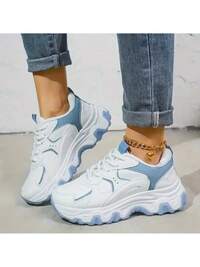 Women's White Sneakers, Spring And Autumn Sports Running Shoes, Casual Lace-Up Flat Non-Slip Shoes, 2025 Summer Women's Sports Shoes, White Shoes, Women's Platform Shoes, Lightweight And Comfortable, New Casual Shoes Suitable For Matching Pants, Suitable For Parties, Fashionable, Cute And Elegant Aesthetics
