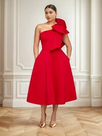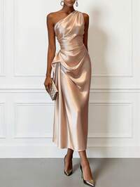 Magic Mia Elegant Satin Midi Dress For Women, Velvet Sequin Contrast, A-Line, Long Sleeves, Crew Neck, No Belt, Holiday Party Dress, Christmas Dress, No Padding, Regular Fit, Solid Color#2 Bestseller