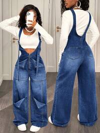 in Wide Leg Women Denim Overalls & Jumpsuits