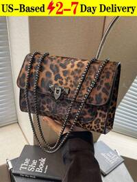 Vintage Leopard Print Crossbody Bag With Chain Strap, Multi-Functional And Elegant Shoulder Crossbody Bag,Vintage-Inspired Flap Over Purse With Adjustable Shoulder Strap And Metal Lock Closure, PU Leather Animal Print Handbag For Women, Fall Winter Fashion Bag For Daily Use, Date Nights, Commuting, Work And Student Use,Parties And Travel, Fits Phone And Wallet In Black, Brown And Coffee Colors[US Local Warehouse]#9 Bestseller