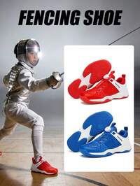 Zapatos de esgrima para mujeres con funciones antideslizantes y resistentes al desgaste, diseño de hebilla giratoria roja y azul, zapatos de entrenamiento y competición de esgrima, zapatos deportivos profesionales de esgrima