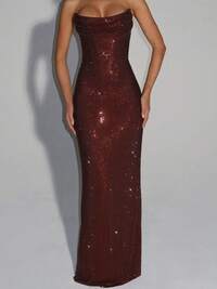 ADYCE Sequin Strapless Hollow Fishbone Pattern Formal Dress, High-Waist Pleated Design, Satin Ribbon Slit Thigh, Backless Lace-Up, Suitable For Cocktail Party, Gala, Floor-Length Gown, Also Suitable For Wedding Guest, Formal Occasion, Graduation Ceremony, Date Night And New Year, For Valentine's Day Spring Elegant#9 Bestseller