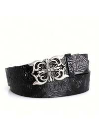 1 Piece Bohemian Style Black Faux Leather Belt, Paired With Vintage Oval Hollow - Suitable Jeans, Dresses And Casual Wear, Daily Fashion, Dress Accessories, Bohemian Style, Fashion Accessories, High-Quality Craftsmanship, Embossed Details, Fashion Accessories, Bohemian Enthusiasts, Women's Fashion