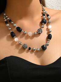 M&Y JEWELRY1pc Bohemian Vintage Elegant Black, Brown, Khaki Resin Round Beads, CCB Beads, Glazed Spotted Beads DIY Necklace, Imitation Jade Resin Round Beads With Metal Chain, Suitable For Sweater, Everyday, Party, Holiday, Suitable As Gift For Valentine's Day, Thanksgiving, Friends, Seasonal Wear. Each Resin Bead Has Slight Molding Mark