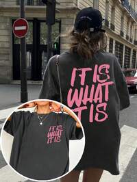 Graphic Print T-Shirt Women'S Casual Crew Neck T-Shirt With "It Is What It Is" Pink Letter Print, Short Sleeve, Round Neck, All-Season Tee, Casual Wear | Playful Print Tee | Comfortable Fit