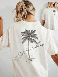 Camiseta con estampado gráfico, camiseta de manga corta con cuello redondo y estampado de árbol de coco, top casual para primavera y verano, ropa de mujer